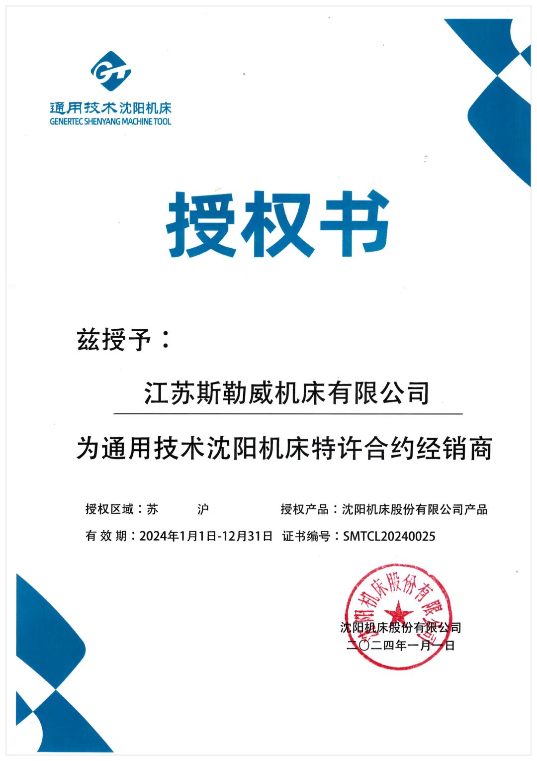 沈陽機床4S店授權(quán)書2024年