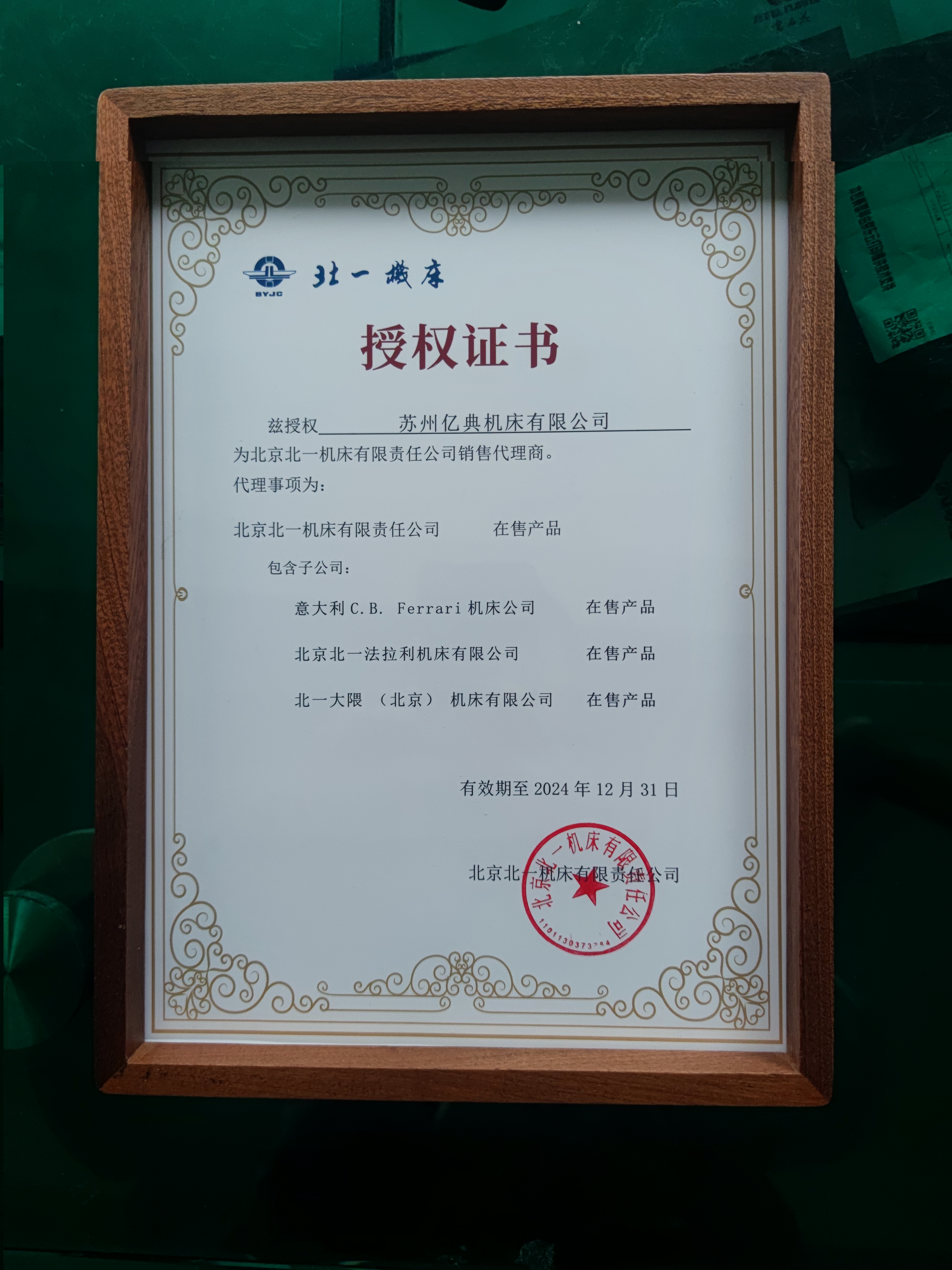 北一機床(北一大隈)授權(quán)書2024年